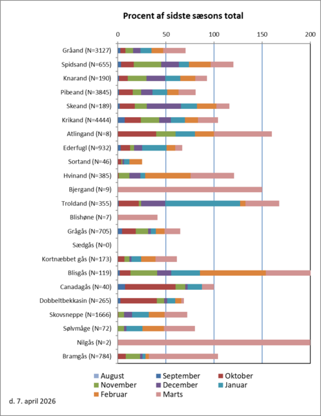 | Pibeand | 3845 | 80,7 | Sædgås | 0 | 0,0 |