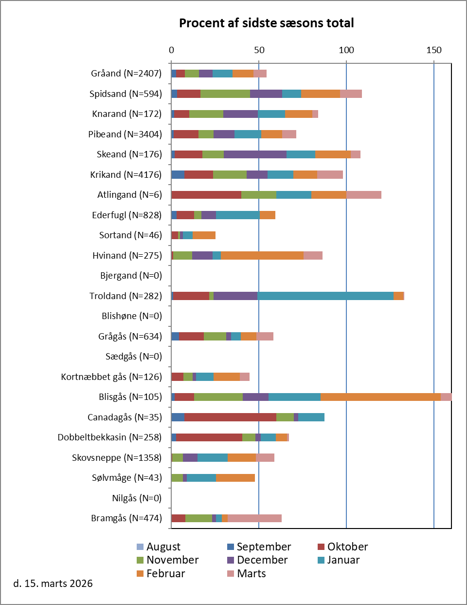 | Bjergand | 0 | 0,0 | Bramgås | 474 | 62,9 |